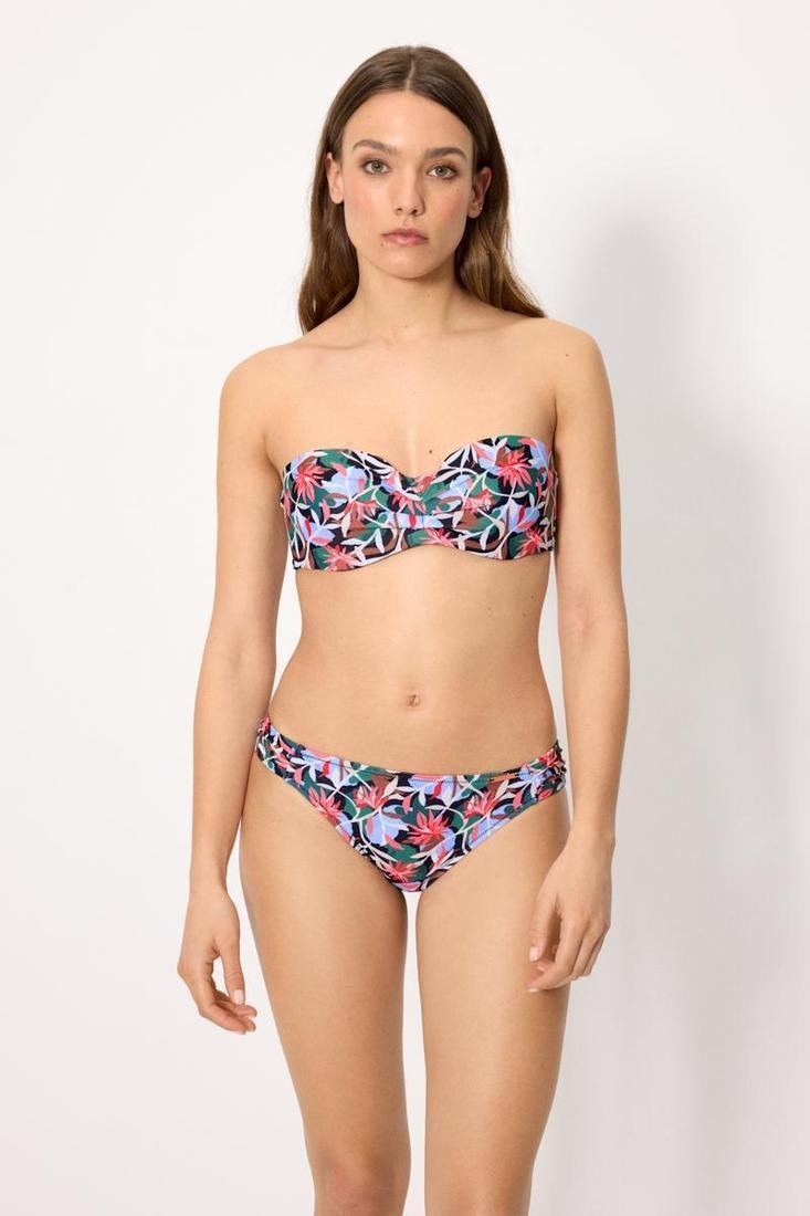 ¡Siéntete cómoda, segura y a la moda este verano! Este conjunto de bikini bandeau ha sido diseñado para realzar la silueta natural ofreciendo el máximo soporte. Su vibrante estampado y el corte de la braga mini lo convierten en el aliado perfecto para tus días de sol, ya sea en la playa o en la piscina.