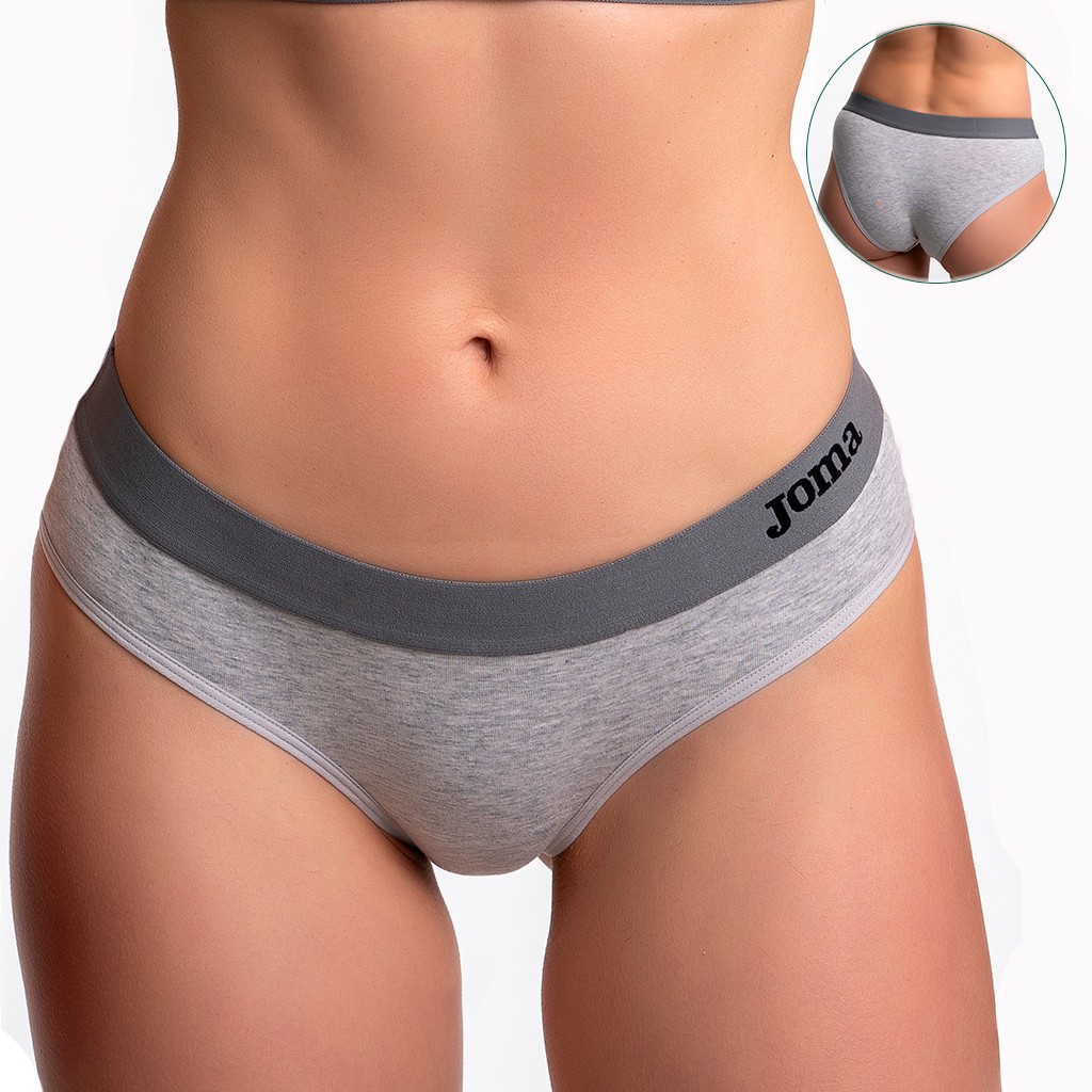 Braga bikini para mujer de corte bajo con cinturilla de goma vista suave y con logotipo JOMA. Ideal para la practica deportiva gracias a su tejido de algodón bielástico para mayor comodidad y adapatabilidad al cuerpo. Se envia en caja individual