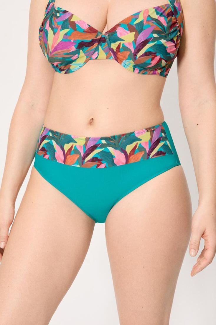 Braga de bikini alta reductora con compresión en abdomen. Lisa con cinturilla estampada.