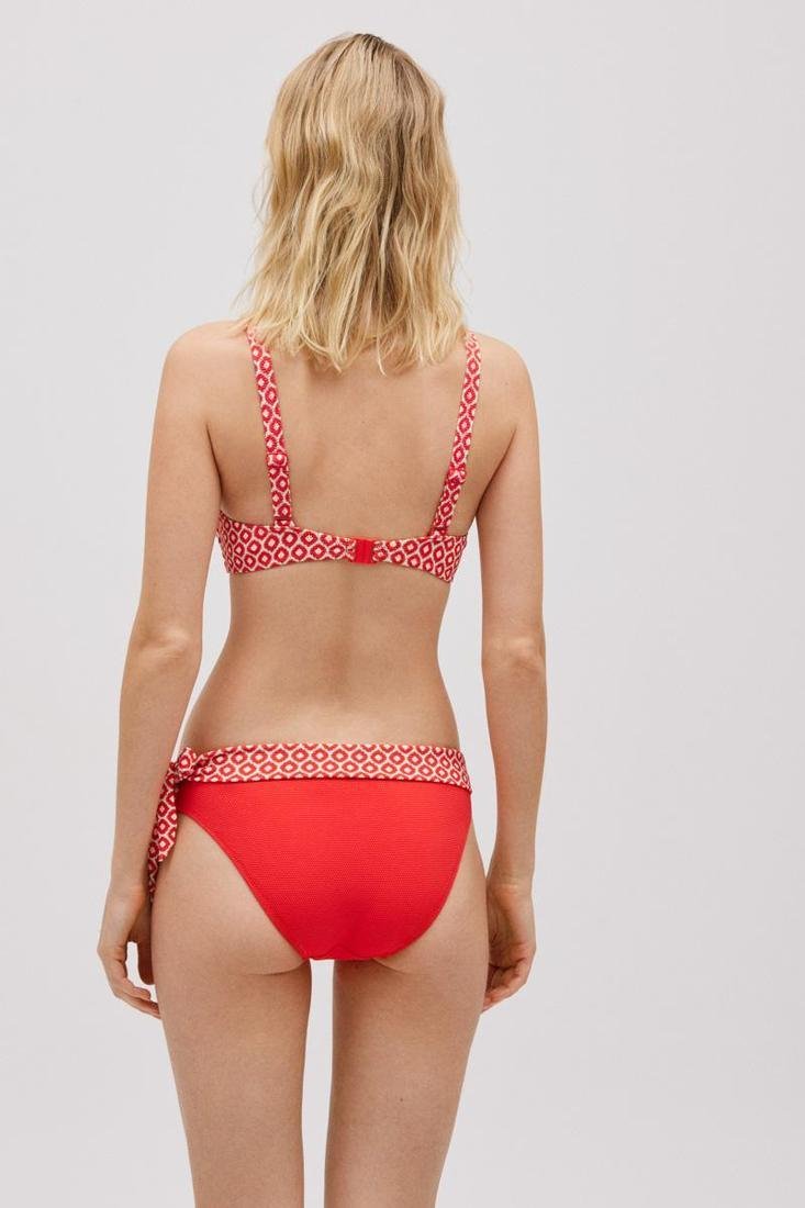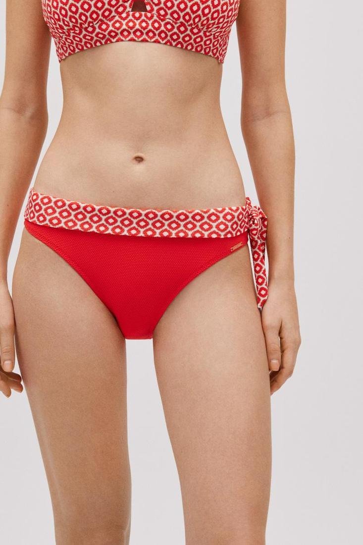Braga midi en tejido piqué. Lisa con detalle en el borde superior estampado. Nudo decorativo en el lateral. Combínalo con un top de bikini a conjunto y completa el look.