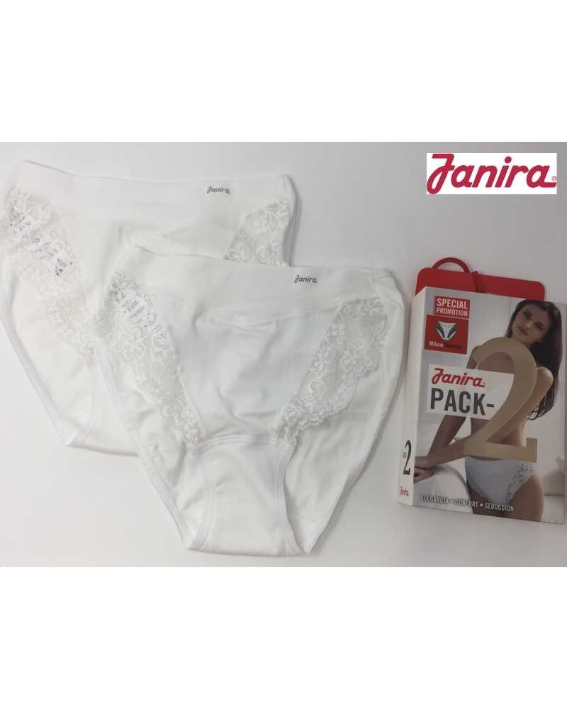 Pack de 2 braguitas de Janira de algodón con encaje, que incorpora el tratamiento “Super-Cotton”.
