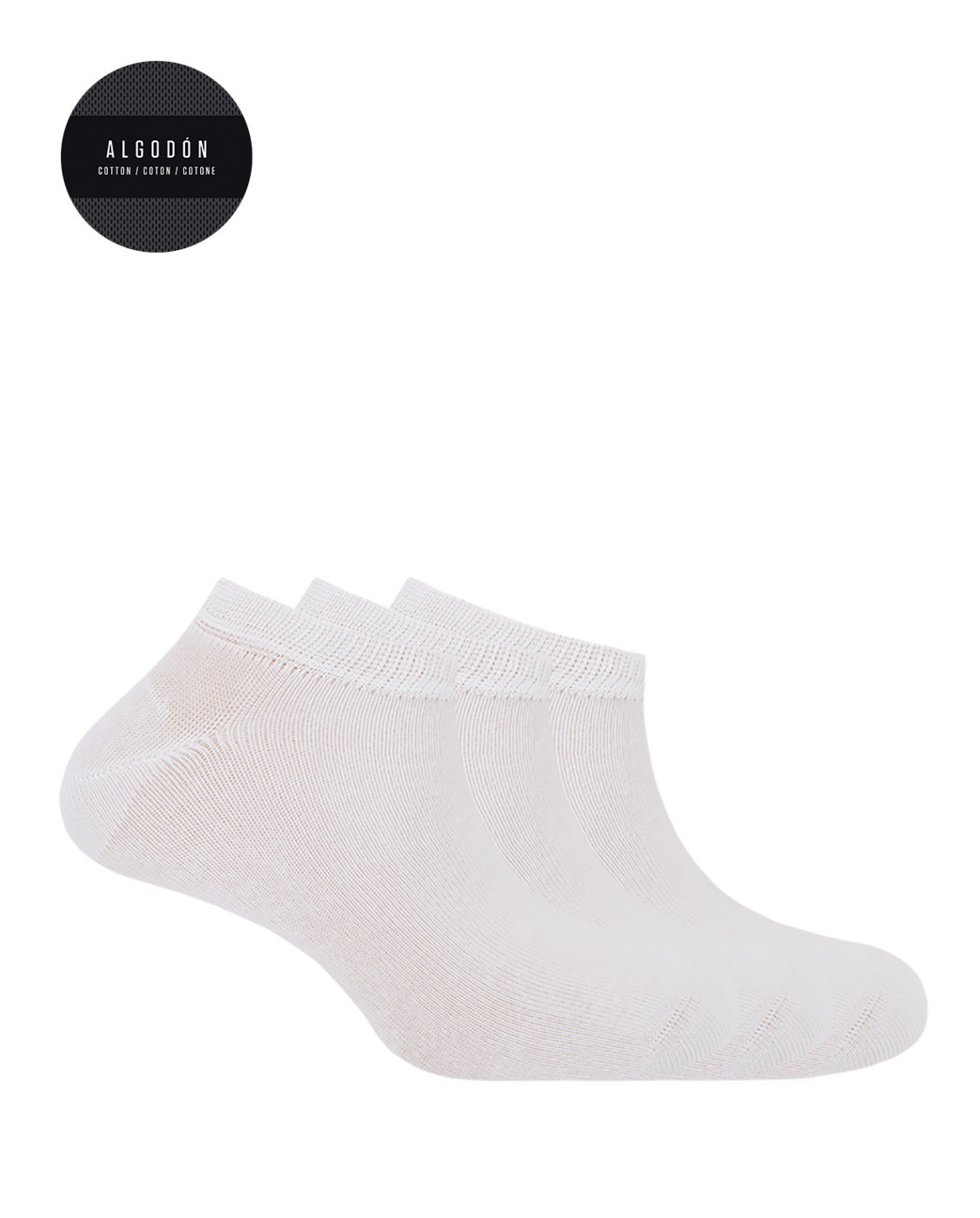 Pack de 3 pares de calcetines de algodón tobilleros lisos. Con tratamiento Deodorant con efecto antihongos, antibacteriano y evita el mal olor de pies. Con el detalle del logo bordado en el pie.