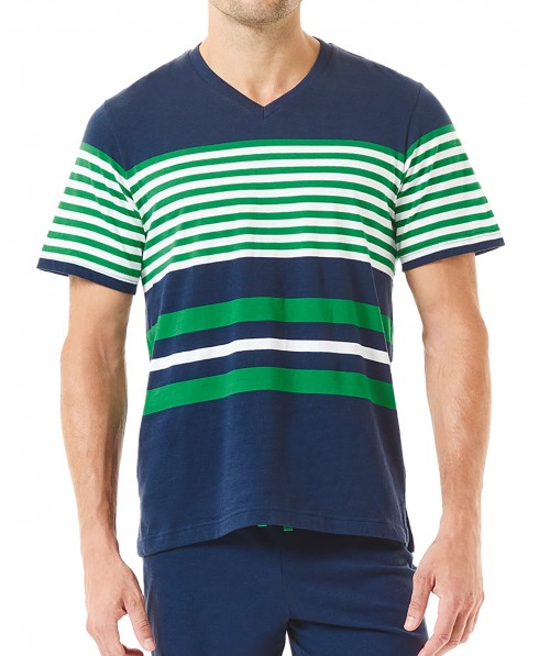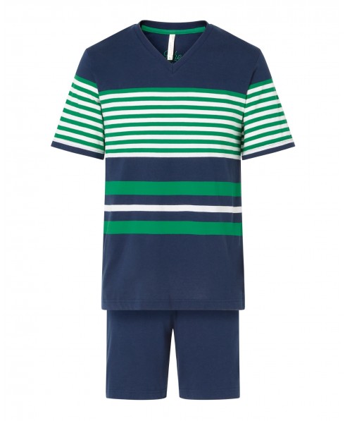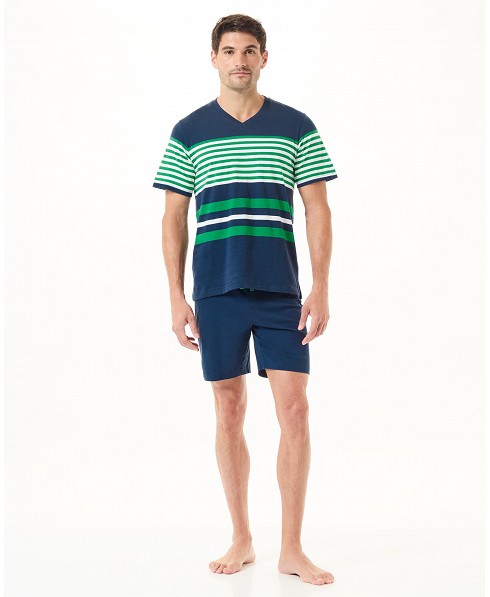 Pijama corto de hombre, estampado en rayas, chaqueta cerrada rayas, cuello pico manga corta, pantalón corto.