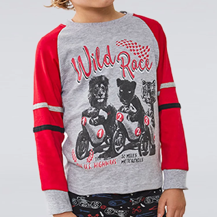 Camiseta de manga larga y cuello redondo con puño y estampado en el pecho.