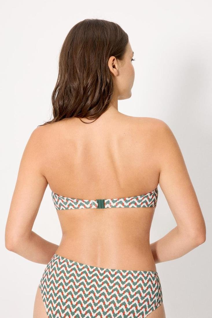 Escote Bandeau: Ideal para un bronceado uniforme. Su estructura interna asegura que el top se mantenga en su sitio incluso sin tirantes.