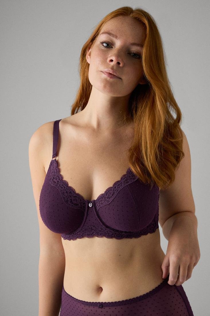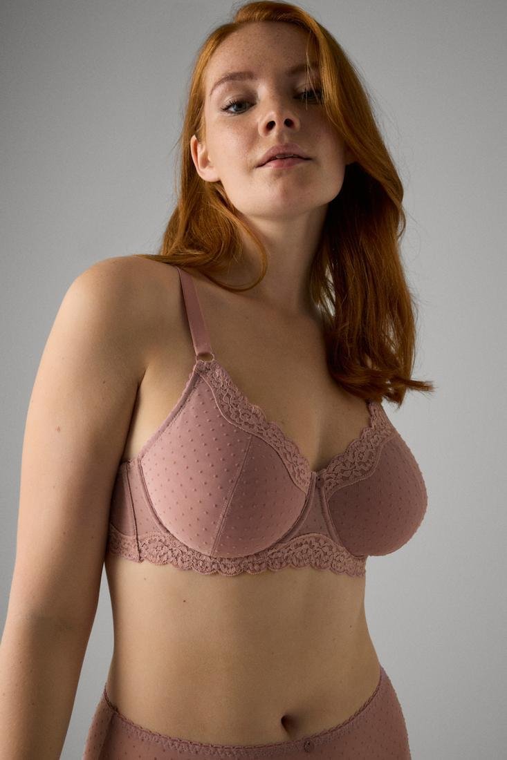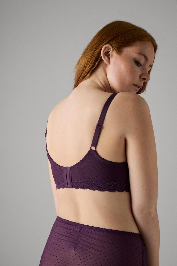Sujetador reductor con aro sin relleno. Espalda anatómica reforzada para mayor sujeción. Diseño elegante de plumeti.